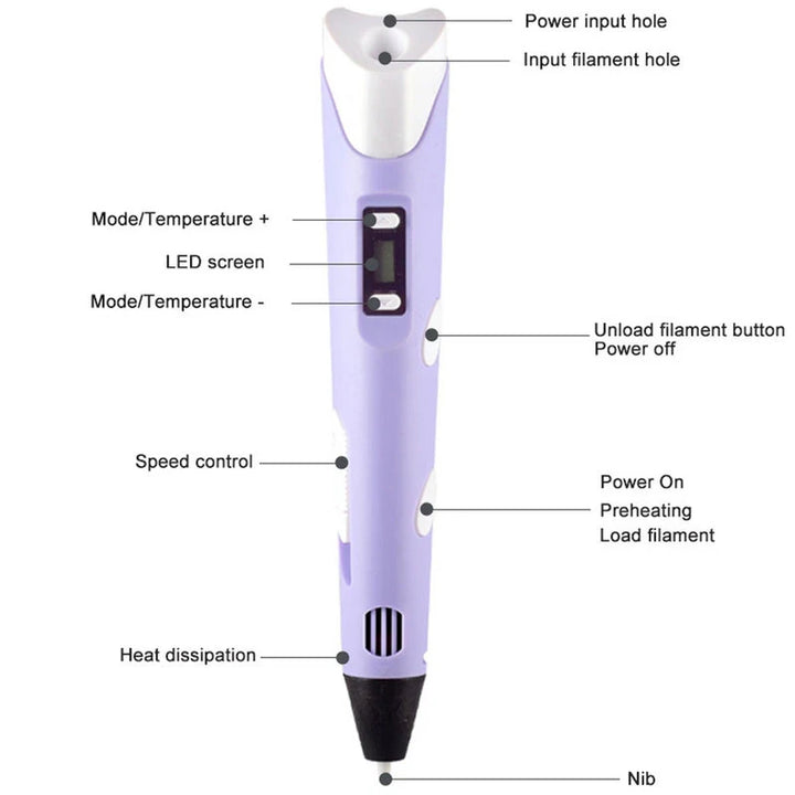 - This 3D printing pen is a perfect gift choice for kids and adults, it can help children improve their spatial thinking and develop creative ideas, cultivate creation and artistic skills.