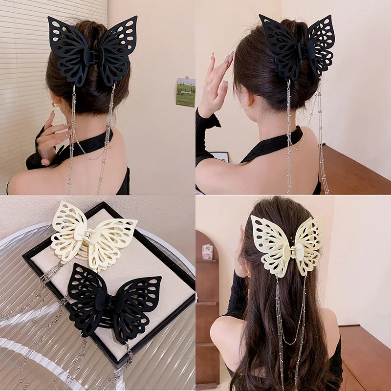 - The design of our butterfly hair clip is very futuristic. The hair clip can be disassembled. You will look dignified and elegant if you wear the butterfly gripper alone, and you will look lovely and playful if you wear our butterfly tassel.