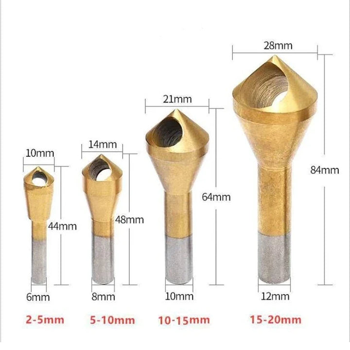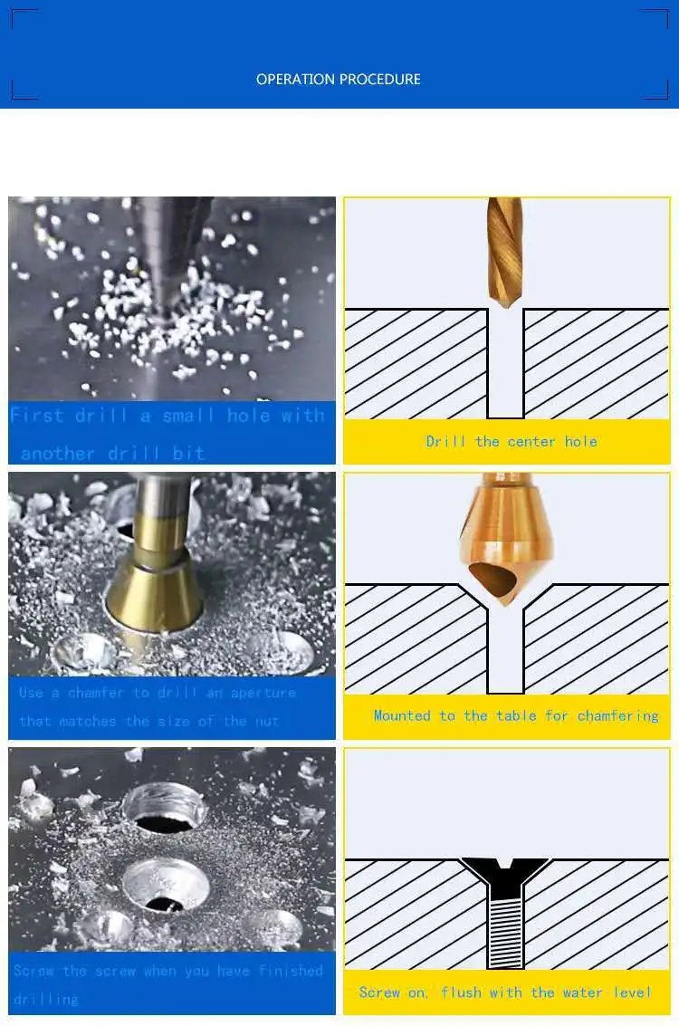 ✅CHAMFER RANGE: 2-5mm, 5-10mm, 10-15mm, 15-20mm; Shank diameter: 6mm, 8mm, 10mm, 12mm; Head diameter: 9.7mm, 14mm, 21mm, 28mm.