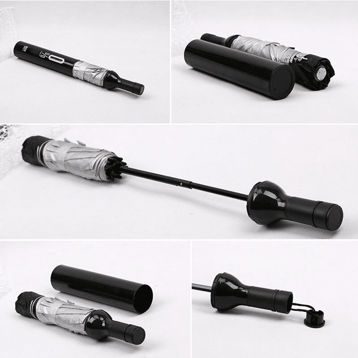 This Excellent Folding Wine Bottle Umbrella is a perfect combination of portability, protection and durability.