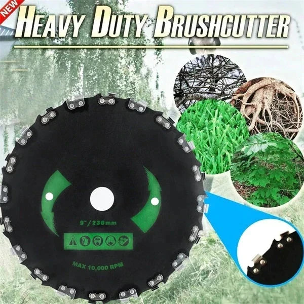 - Small trees, shrubs, heavy bushes, dense grass, and weeds are no problem with this tool! The chain saw is placed between steel plates, which make sure that it’s safe to use!