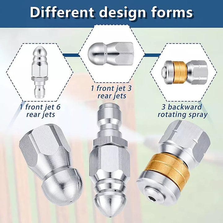 ⚡High-Quality Stainless Steel Material - The sewer jetting nozzle is made of premium-quality stainless steel, the material is durable, sturdy, anti-rust, and resistant to corrosion. Long time for use. Size: 1/4", before order please pay attention to the dimension, thank you!