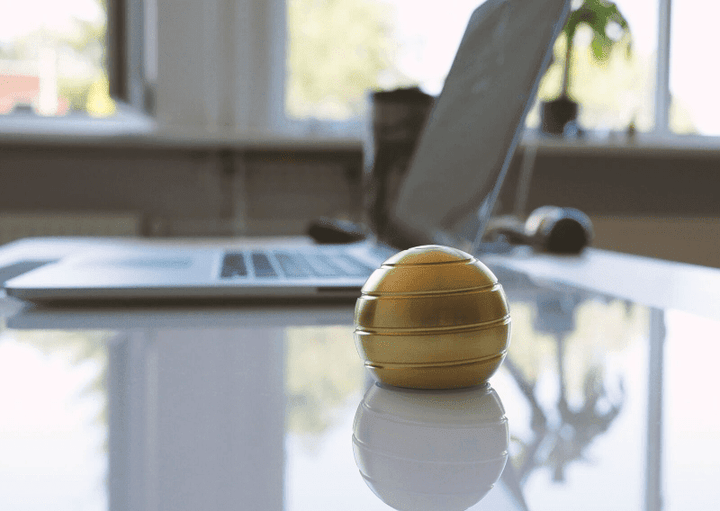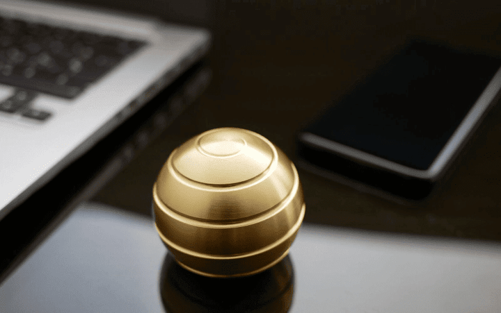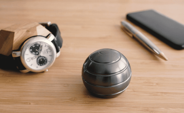 Designed to spin on any desk or flat surface. The solid spherical body and smooth finish make it very pleasant to interact with. It spins silently so you won't be bothering anyone around.