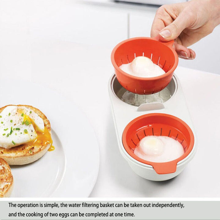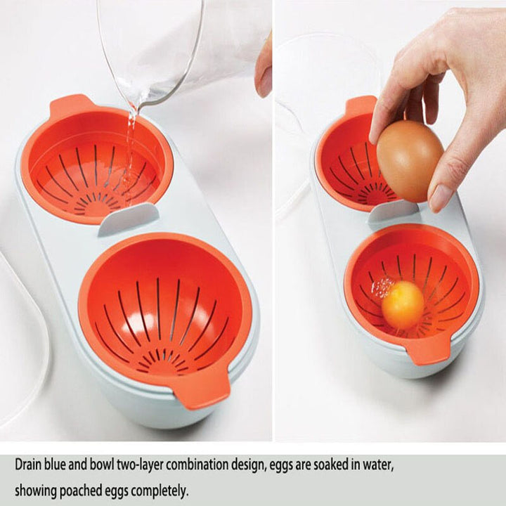 - Fill the pockets with water (make sure the water is above the hollow section to prevent nutrient loss), add eggs in them, put them in the microwave for 2-3 minutes depending on the yolk hardness you need, filter the excess water, and take out the prepared eggs.