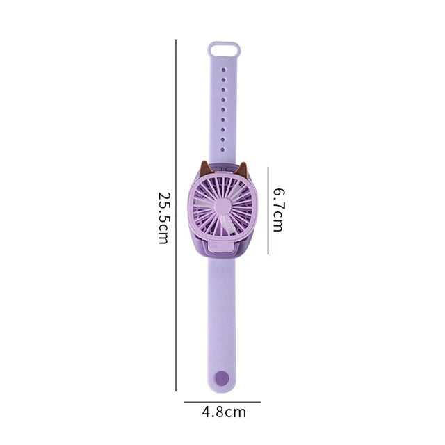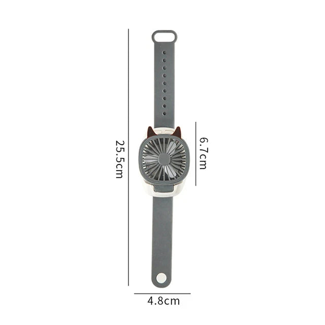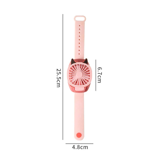 - The fan is made of ABS plastic safety material, which is non-toxic and harm-less, and is healthy and safe to use. The fan wristband is made of food-grade silicone wristband, which is soft and firm.
