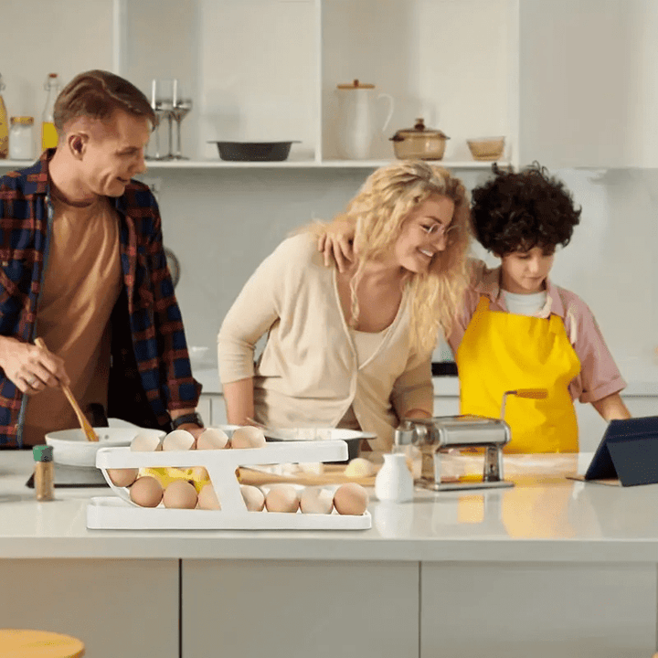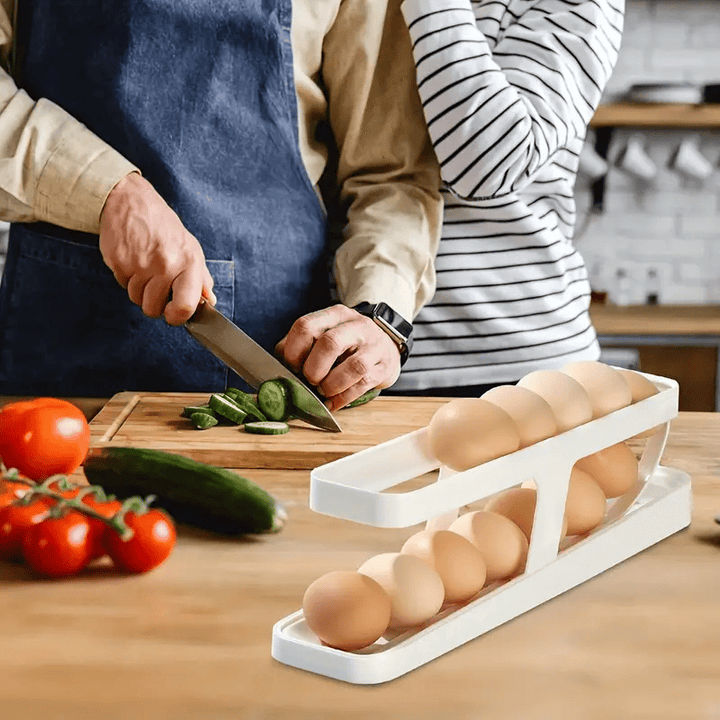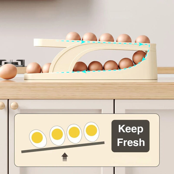 - Keep your eggs organized and easily accessible with this Rolldown Refrigerator Egg Dispenser.