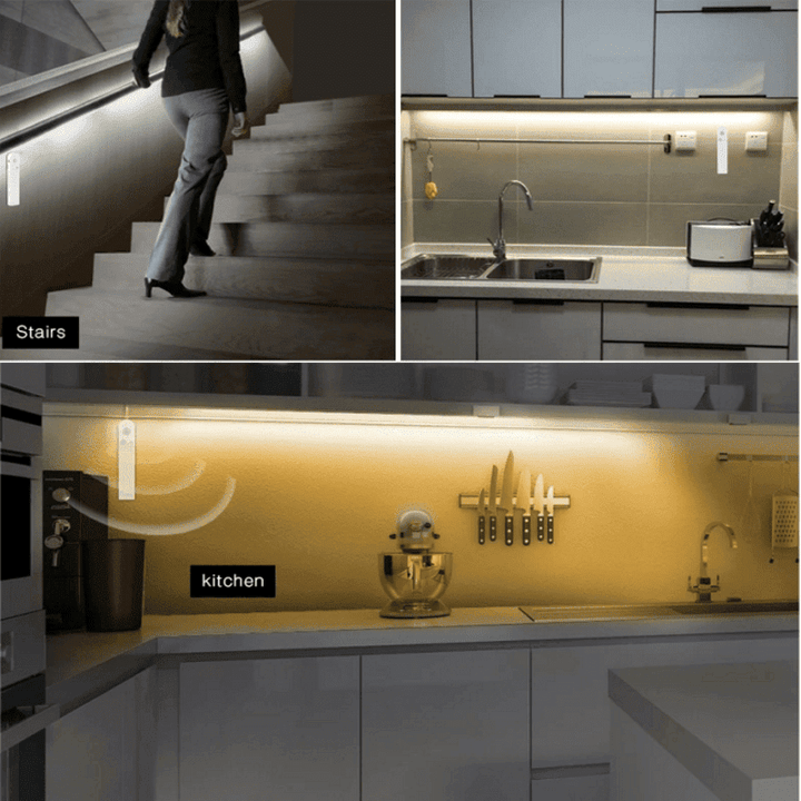 When you get out of bed in the middle of the night, open a closet or kitchen cupboard, walk down the stairs, enter the storage room, your movement will turn the light on automatically without having to use a switch.
