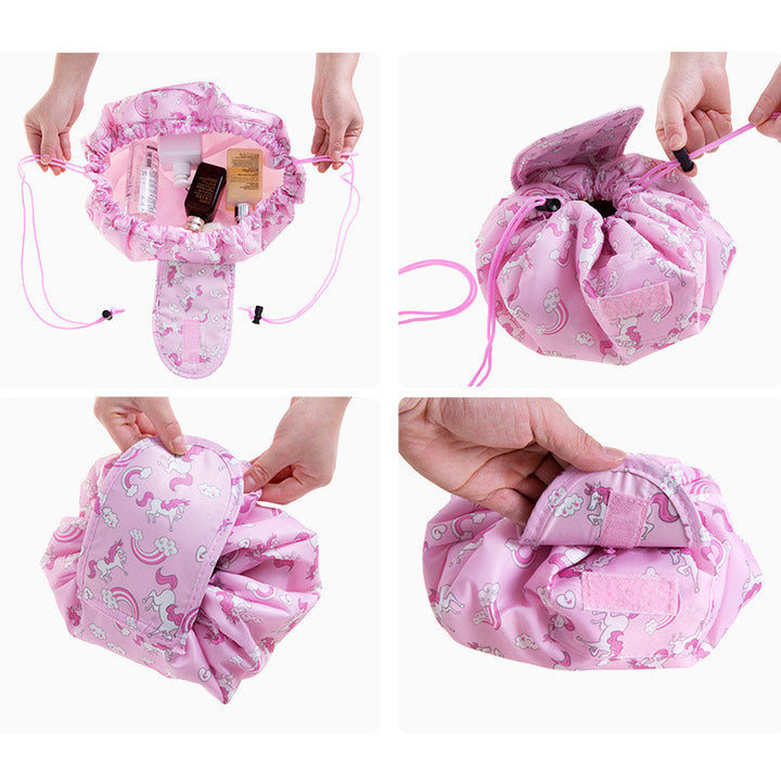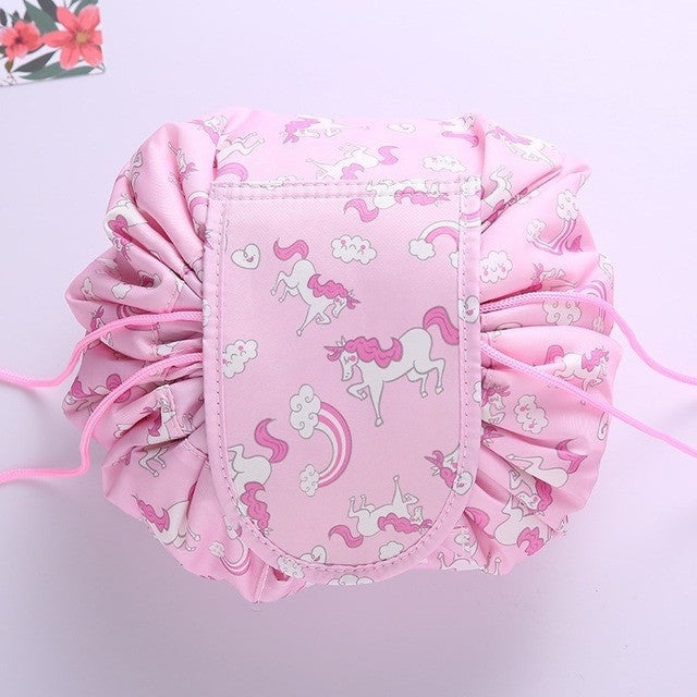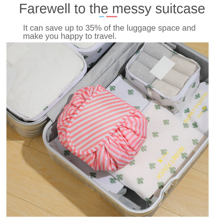 Packing up all your products is no longer a chore. Just place everything on the open makeup bag and pull the strings to close. It really is that simple.